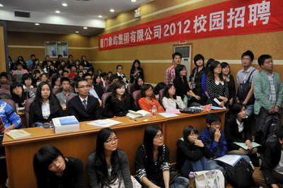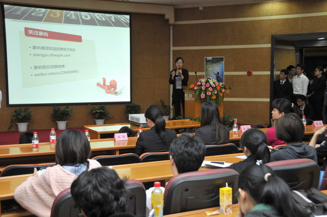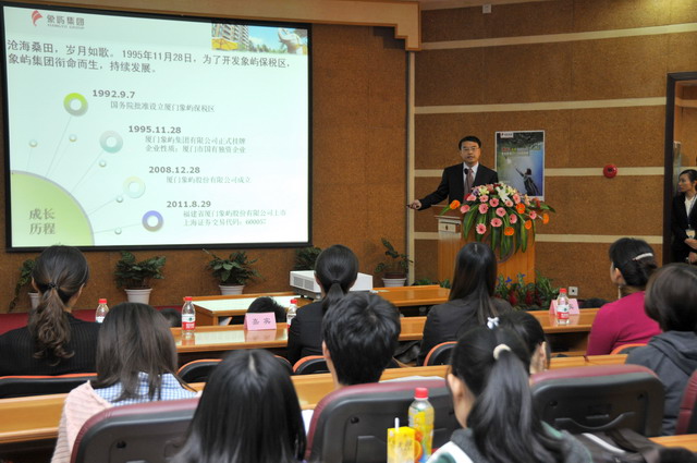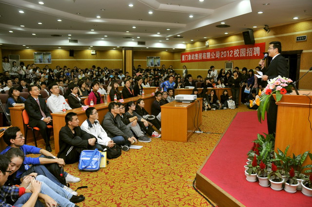 2012年象嶼集團(tuán)全國校園招聘首場宣講會于11月23日晚在廈門大學(xué)拉開帷幕。集團(tuán)人力資源總監(jiān)林志勇、象嶼股份人力資源部經(jīng)理林焱為同學(xué)們進(jìn)行了精彩的宣講并回答了同學(xué)們現(xiàn)場的提問,鼓勵廈大的優(yōu)秀學(xué)子們加入到象嶼的大家庭。據(jù)悉,此次宣講會吸引了近500位應(yīng)屆生參加,場面火爆,提問環(huán)節(jié)積極踴躍,會后現(xiàn)場收到簡歷近500 份。