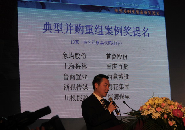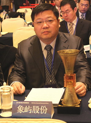2011年12月19日,由上海證券交易所主辦、國(guó)務(wù)院國(guó)資委和經(jīng)濟(jì)合作與發(fā)展組織(OECD)共同支持的第十屆中國(guó)公司治理論壇在上海召開。中國(guó)證監(jiān)會(huì)主席郭樹清、上海市委副書記、市長(zhǎng)韓正、上海市委常委、副市長(zhǎng)屠光紹等領(lǐng)導(dǎo)出席論壇并給獲得公司治理專項(xiàng)獎(jiǎng)的各獲獎(jiǎng)上市公司頒獎(jiǎng)。象嶼集團(tuán)副總裁、象嶼股份副董事長(zhǎng)陳方代表公司應(yīng)邀出席論壇。今年,象嶼股份因其在歷時(shí)2年多的破產(chǎn)重整和資產(chǎn)重組中的優(yōu)良表現(xiàn)和創(chuàng)新而獲得“典型并購(gòu)重組案例獎(jiǎng)”提名。此獎(jiǎng)項(xiàng)代表著業(yè)界和上交所對(duì)于象嶼股份成功借殼上市的肯定和贊賞。