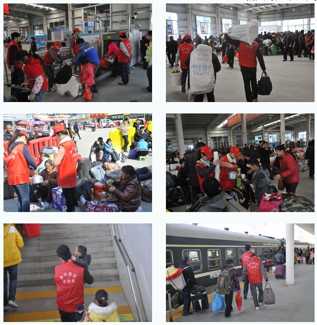 今年已是集團(tuán)第三年組織參加春運(yùn)服務(wù)。雖然是周末休息日,但我們的志愿者一早就到達(dá)服務(wù)區(qū)域:有的協(xié)助搭建志愿者暖洋洋服務(wù)站并駐點(diǎn)服務(wù),有的負(fù)責(zé)整個(gè)廣場(chǎng)及候車(chē)廳外圍的引導(dǎo)和搬運(yùn),有的負(fù)責(zé)協(xié)助候車(chē)廳安檢及廳內(nèi)服務(wù),還有的幫助那些攜幼提重的旅客順利登車(chē)。