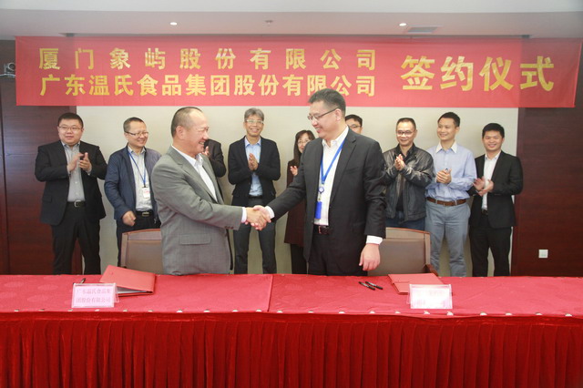 12月27日,廈門象嶼股份有限公司與廣東溫氏食品集團股份有限公司舉行了合作簽約儀式,象嶼股份鄧啟東總經(jīng)理與溫氏股份何維光副總裁分別代表雙方公司在《戰(zhàn)略合作框架協(xié)議》上簽字。此次戰(zhàn)略合作的簽署將進一步鞏固和延伸雙方在農(nóng)產(chǎn)品產(chǎn)業(yè)鏈上的深度合作,實現(xiàn)共贏發(fā)展。